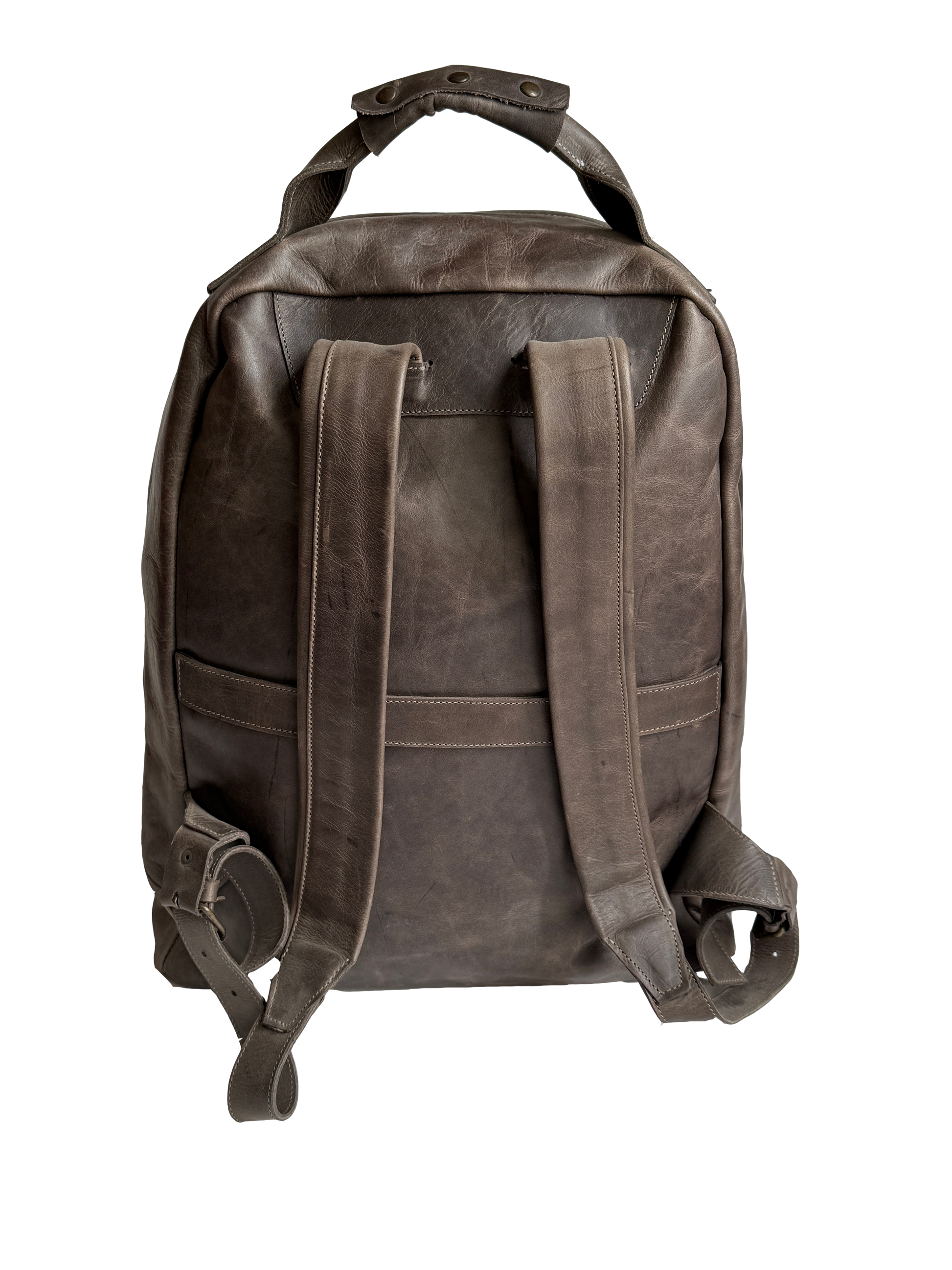 Mochila de piel con compartimento para laptop de 17" acojinado.
